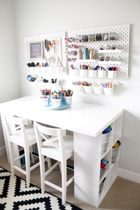 The amount of space you have to create a wonderful craft room can be large or small. Remember to think outside the box when it comes to your storage needs. You can also go vertical, if you do not have the space to spread out horizontally.