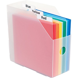 All of Danna’s cardstock and printed papers are in magazine holders so she can see everything at once.