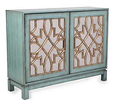 We also can’t get enough of the Marie Cabinet with its mirrored doors, gold trimming and its soft outer blue surface. It’s very eye catching and would transform any room.